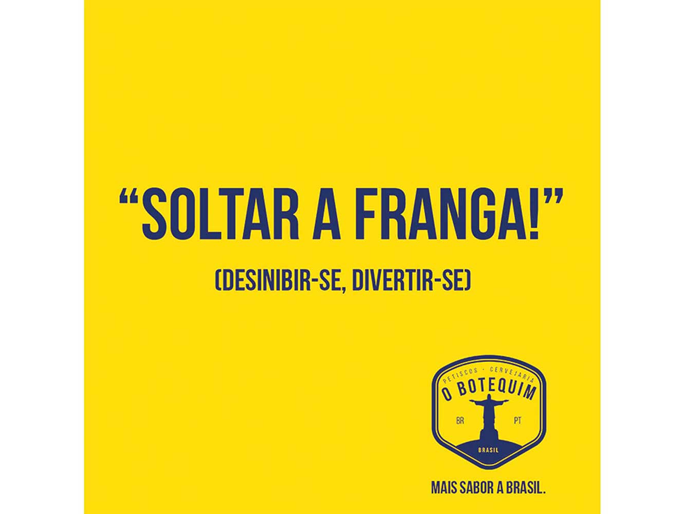 Que linguagem utilizar para expressar esta pureza, esta diversidade, esta verdade que emana de uma gastronomia que regressa à s origens, que nos fala também do ritmo da vida nos trópicos, do que é ser brasileiro? Como falar desta pincelada da aquarela do Brasil a nascer num recanto do Norte de Portugal? Misturamos samba e fado, alegria e saudade, "demos uma paradinha" e enviamos "aquele abraço"! As expressões idiomáticas brasileiras constituÃram a mais acertada escolha de conceito de comunicação explorado nas redes sociais, com enorme potencial de partilha, conferindo o tom certo e dizendo tanto de forma tão simples. Tirem o cavalinho da chuva, o Botequim não tem como não amar!