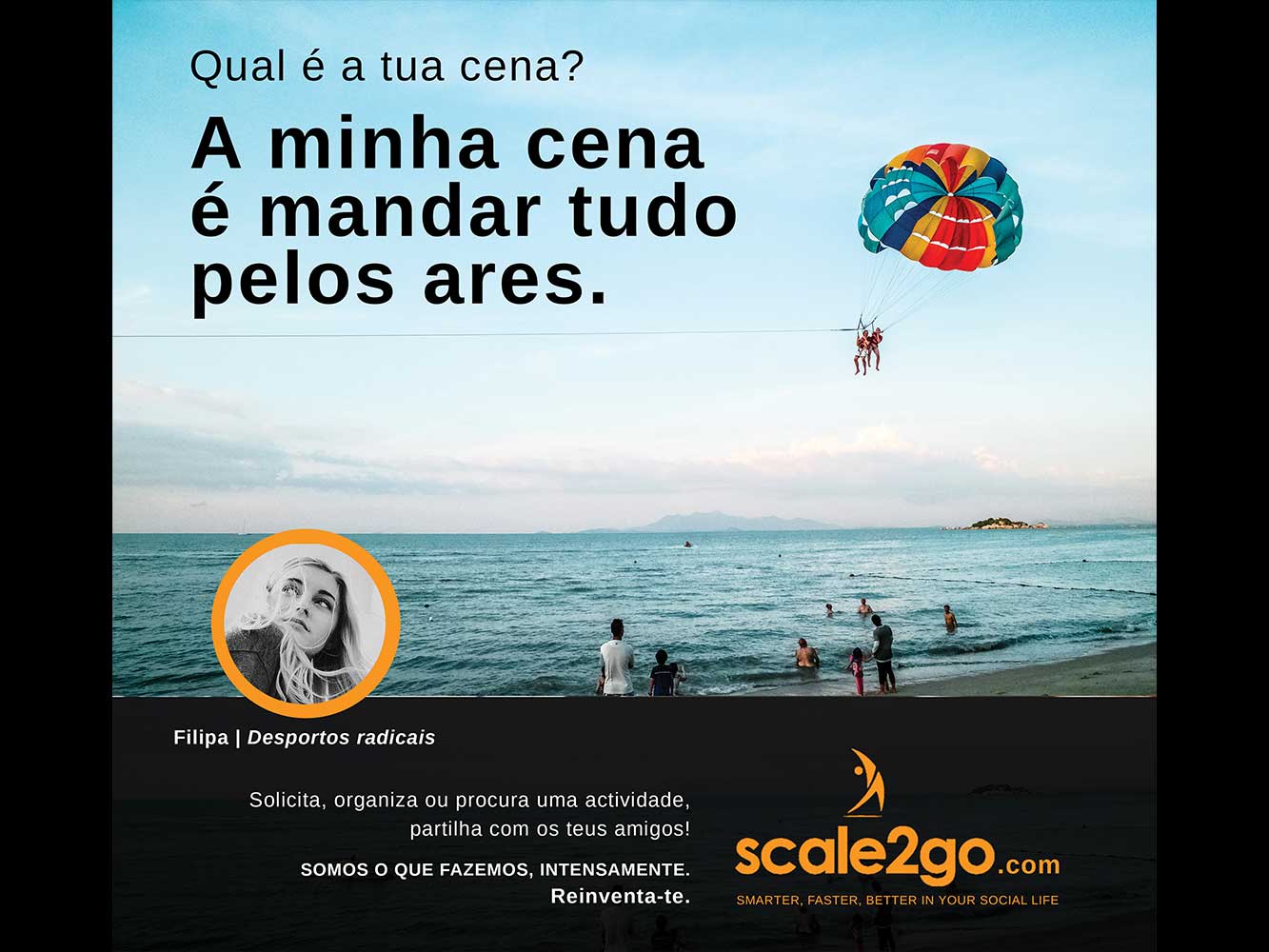 A SCALE2GO nasceu com o objetivo de ajudar a criar pontes entre pessoas com interesses, atividades, hobbies, causas ou projetos comuns. O conceito de base propõe uma agenda interativa, alicerçada numa plataforma online, alimentada pelos contributos de cada utilizador que pode criar ou solicitar atividades de acordo com as suas preferências, assim como convidar os membros da sua rede social.